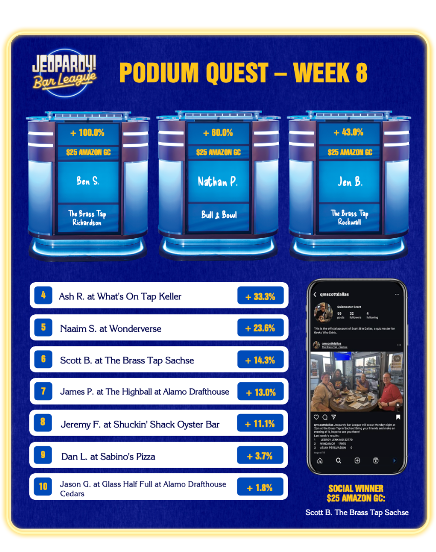 11. Jaimie H. at What’s On Tap North Richland Hills -6.7%